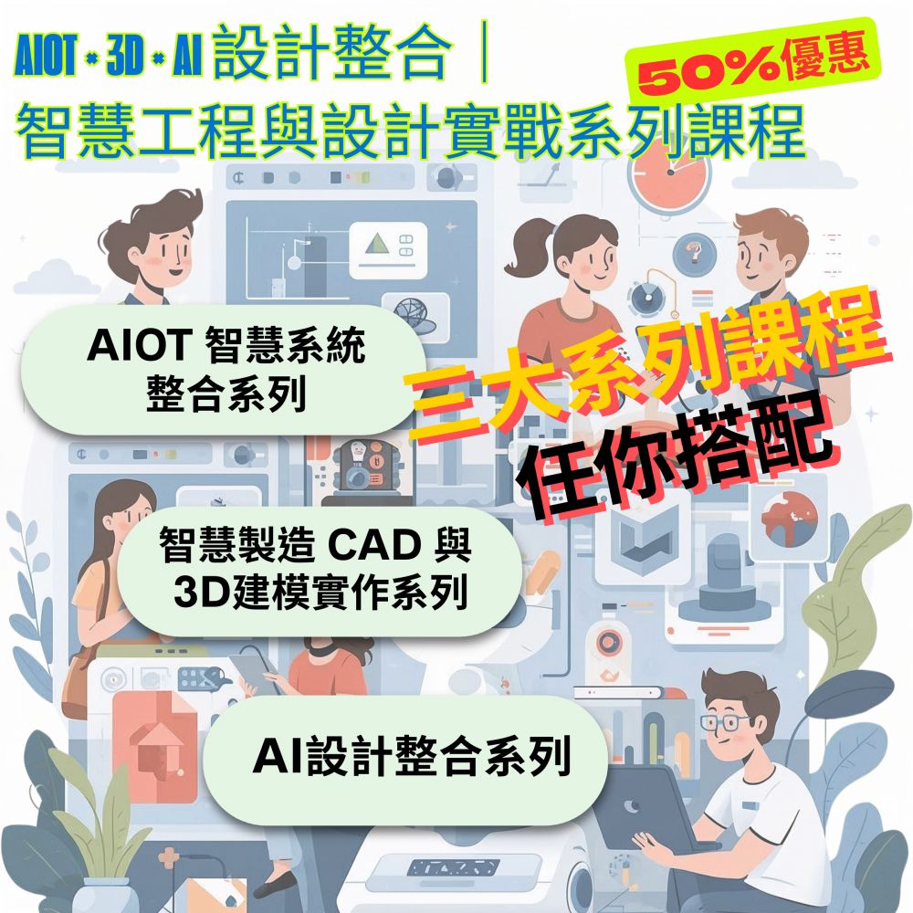 新年度精選(半價優惠 | 依時數報價) AIoT × 3D × AI 設計整合|智慧工程與設計實戰系列課程
